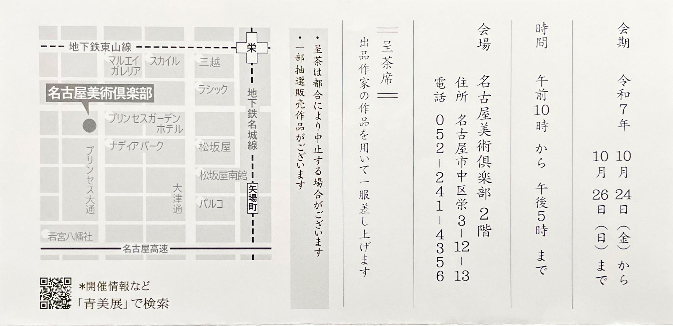 会場 | 名古屋美術倶楽部 2階 名古屋市中区栄3-12-13 TEL:052-241-4356 |